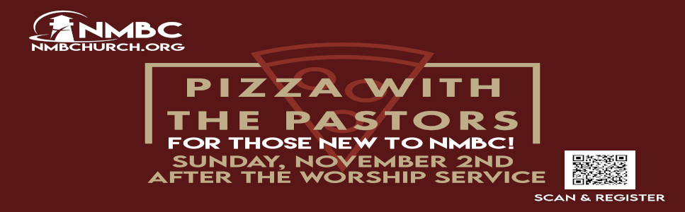 The pastoral staff of NMBC would like to invite you and your family to Pizza with the Pastors on Sunday, November 2nd at 11:30am, Upstairs in the Family Ministry Center. The event is FREE! This is a great opportunity for those who are recent visitors of NMBC to have lunch with and get to know the pastors. If you are interested in attending please do fill out the form so we know how many pizzas we will need for this event. We look forward to seeing all of you then!